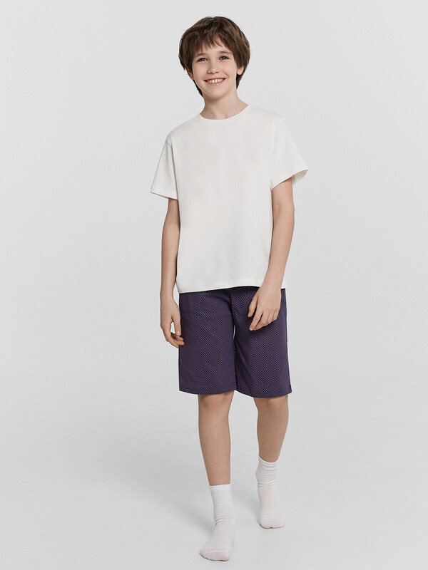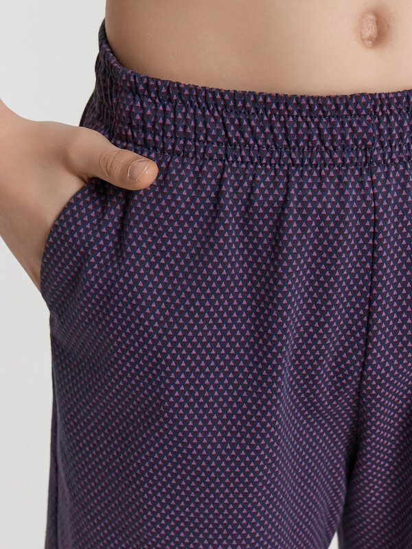Шорты ниже колена, свободного силуэта с высокой посадкой на талии. Спереди карманы с отрезным бочком. Пояс цельнокроеный внутри с резиной 40RV. Низ шор в подгибку.