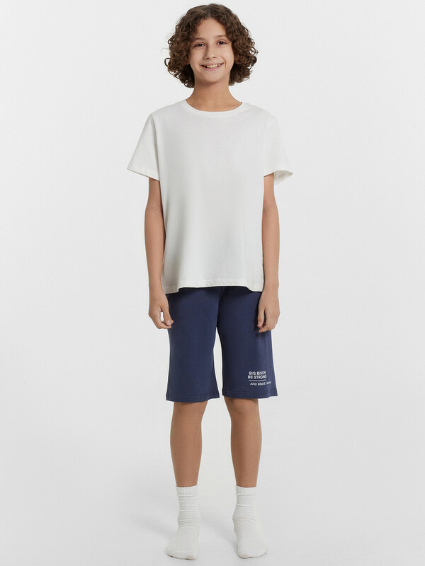 Шорты ниже колена, свободного силуэта с высокой посадкой на талии. Спереди карманы с отрезным бочком. Пояс цельнокроеный внутри с резиной 40RV. Низ шор в подгибку.