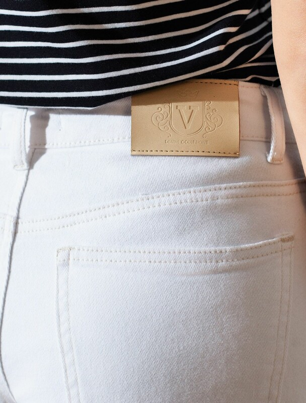Шорты выполнены из эластичного денима. Модель со свободной посадкой и подворотами дополнена декоративной стиркой и тонкими коричневыми строчками. За счет эластана изделие хорошо тянется и гарантирует комфорт и формоустойчивость. Подходит для любой фигуры. Сзади фирменный брендированный патч.