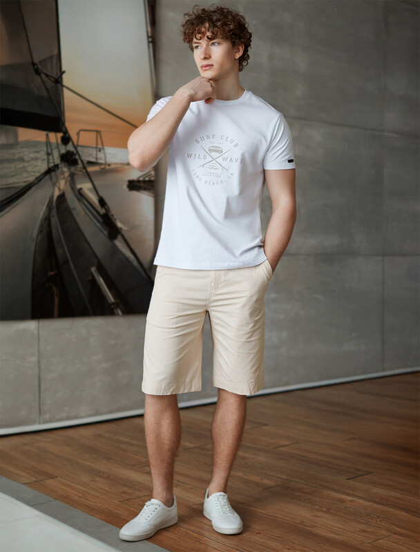 Шорты выполнены из хлопкового твилла. Лаконичная модель без лишнего декора дополнена только фирменной нашивкой с логотипом бренда. Карманы в рамку на пуговицах. Эластичное изделие хорошо держит форму, обладает высокой воздухопроницаемостью и прочностью. Сохраняет форму и цвет в течении долгого времени, не сковывает движений.