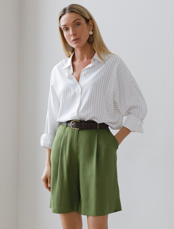 Шорты-бермуды выполнены изо льна с вискозой. Свободная модель с посадкой на талии. Ткань изящно струится, почти не мнется и сохраняет форму в течении долгого времени, обладает высокой воздухопроницаемостью. Идеальное решение в жаркий период. Подходит для любой фигуры и скрывает недостатки. Сочетается в костюме с топом D23.060 и блузками D29.237, D29.244