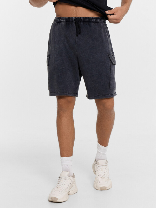 Шорты из трикотажного футера. Силуэт прямой, длина до колена. Пояс с эластичной тесьмой внутри и регулировочным шнуром. Спереди обработаны карманы «хулиганы», имеются и накладные карманы с клапанами. Актуальные шорты!