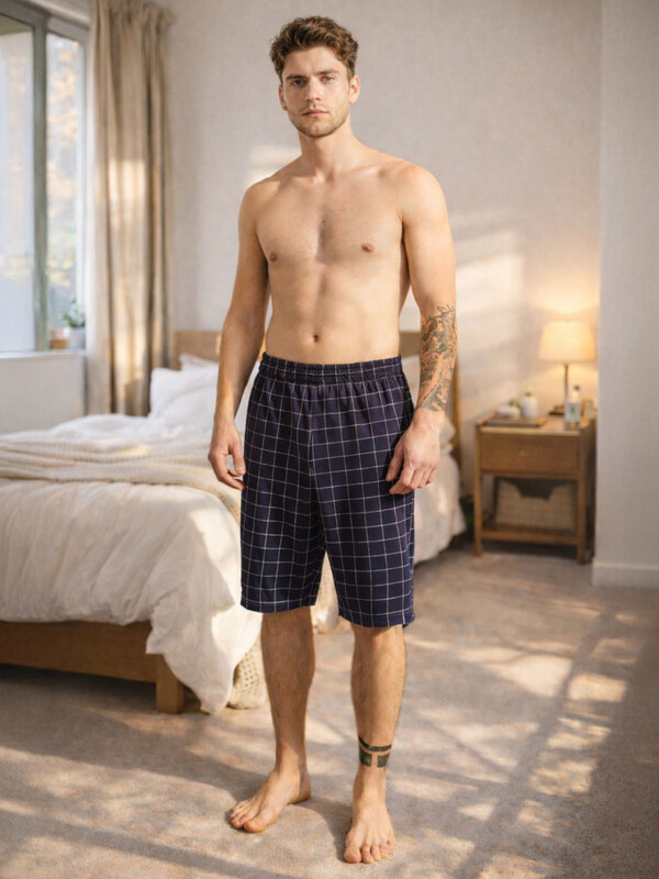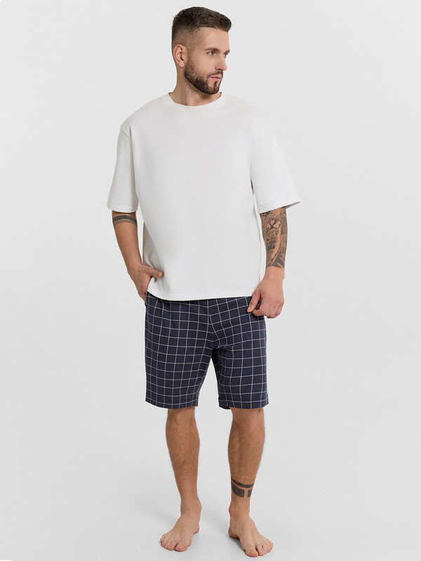 Стильные мужские шорты домашние свободного силуэта. Выполнены из высококачественного хлопка – гипоаллергенного и приятного на ощупь. Пояс – с эластичной тесьмой и шнурком-завязкой, с помощью которого можно регулировать ширину в талии. По бокам шорт есть функциональные карманы для любимых мелочей. Шорты мужские идеальный вариант на каждый день, расцветка и принты поднимают настроение и создают комфортную домашнюю атмосферу. Классный вариант домашней одежды на любое время года. Такие шорты легко можно сочетать с любым верхом из линейки домашней одежды для мужчин. Материал мягкий и эластичный, пропускает воздух и не стесняет движений. Если вам нужна одновременно и базовая вещь, которую вы сможете дополнить любимым верхом - это отличный вариант. Порадуйте себя и своих близких подарками от Mark Formelle из линейки мужской домашней одежды!