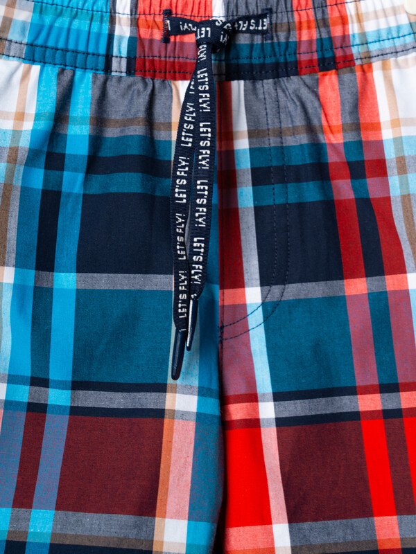 Детские шорты для мальчика. Модель прямого кроя из дышащего, хлопкового поплина. Удобная посадка обеспечивается эластичным поясом со шнуром. Спереди — боковые карманы и декоративные нашивки.