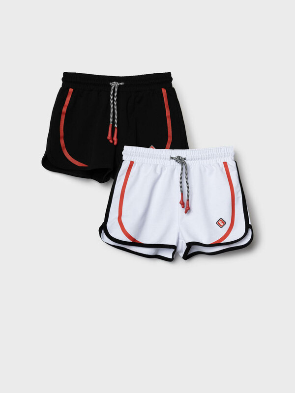 Набор шорт для девочки подростка. Обе модели выполнены в спортивном стиле с короткой длиной и закруглённым краем. Модели из мягкого, хлопкового трикотажа футер. Удобная посадка обеспечивается эластичным поясом со шнуром.