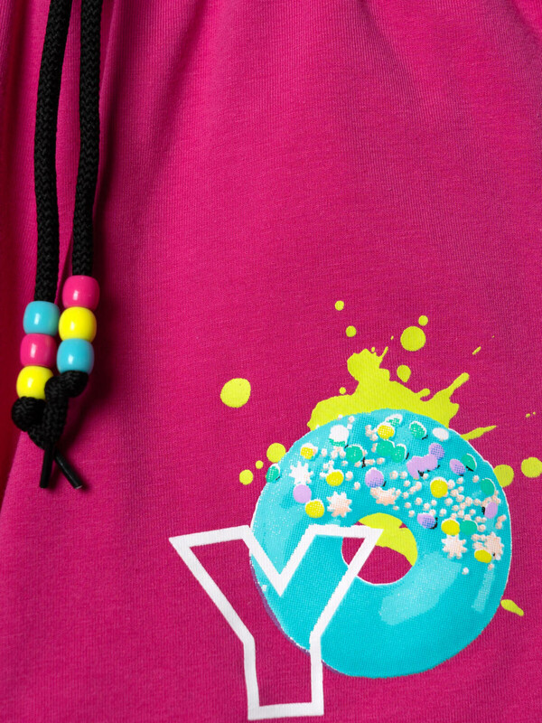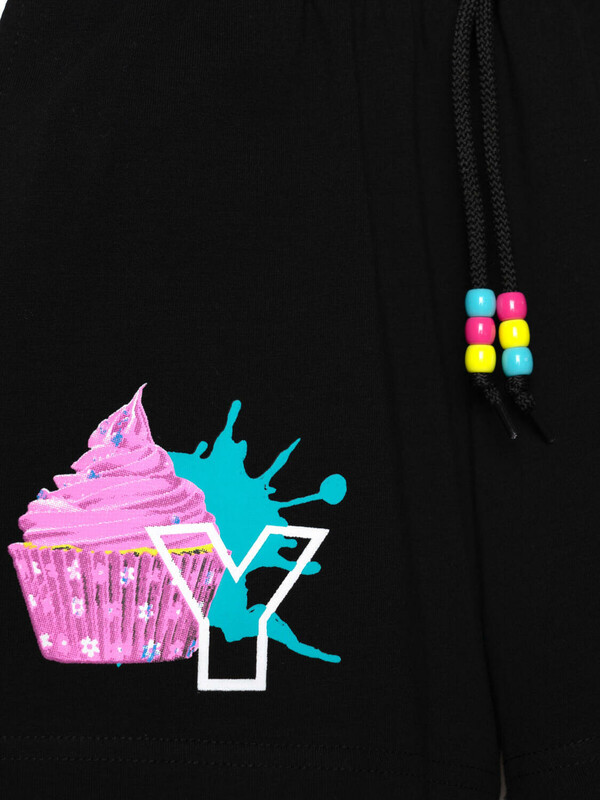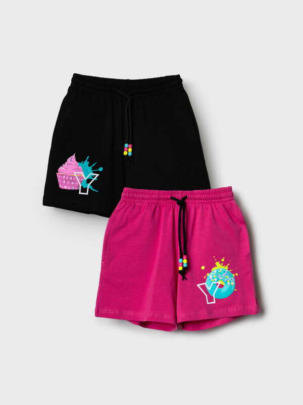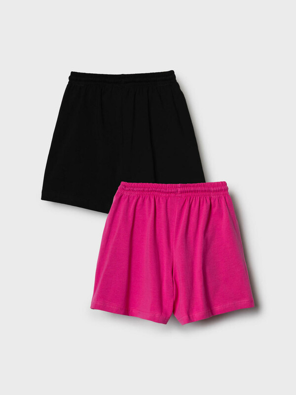 Набор детских шорт для девочки. В комплект входят две пары шорт свободного кроя. Модели из мягкого, хлопкового трикотажа джерси. Удобная посадка обеспечивается эластичным поясом со шнуром. По бокам расположены два кармана.