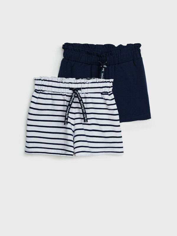 Набор детских шорт для девочки. Комплект шорт из качественного и приятного на ощупь трикотажа джерси. Шорты на резинке со шнурком. Боковые карманы. Высокое содержание хлопка 95%. Благодаря наличию эластана в составе ткани изделие держит форму и меньше мнется. Модель выполнена из качественного и приятного на ощупь трикотажа.