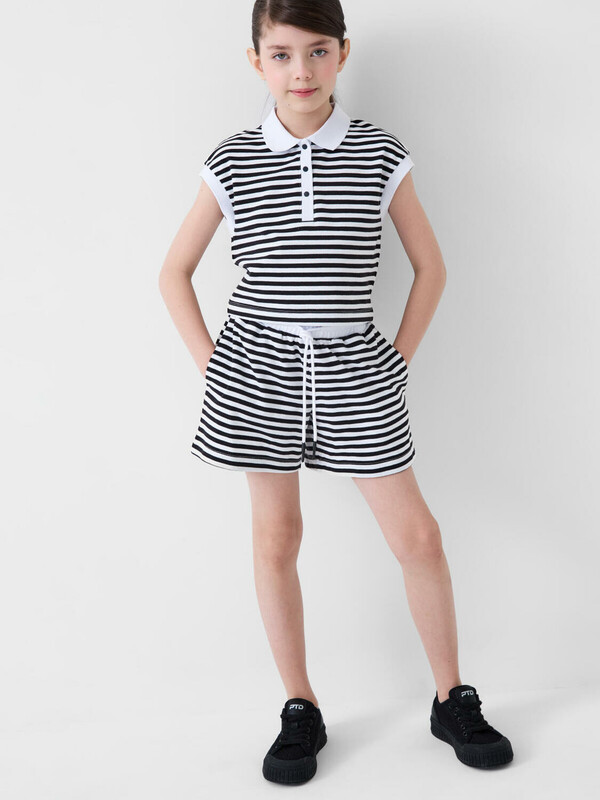 Шорты для девочки подростка. Модель в длине мини, свободного кроя из мягкого, хлопкового трикотажа пике. Удобная посадка обеспечивается эластичным поясом со шнуром. Спереди — боковые карманы.