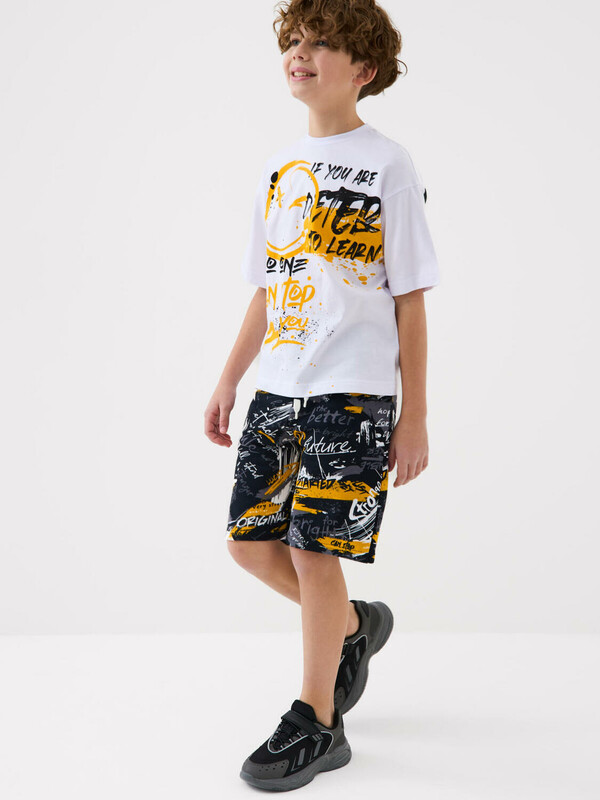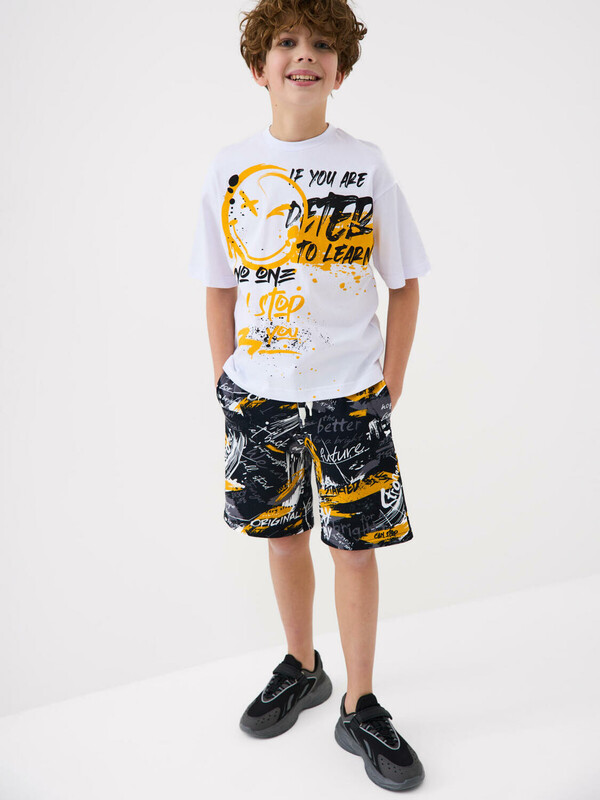 Шорты для мальчика подростка. Модель свободного кроя из мягкого, хлопкового трикотажа футер. Удобная посадка обеспечивается эластичным поясом со шнуром. Спереди — боковые карманы.