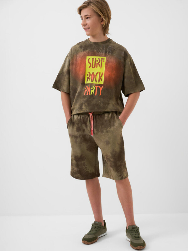 Шорты для мальчика подростка. Модель свободного кроя из мягкого, хлопкового трикотажа футер. Удобная посадка обеспечивается эластичным поясом со шнуром. Спереди — боковые карманы.