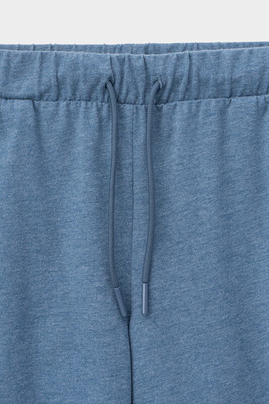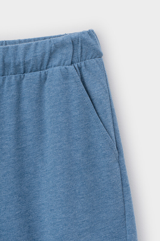 Комфортные шорты с карманами по бокам из меланжевого хлопка. Мягкий пояс на резинке регулируется с помощью шнурка.