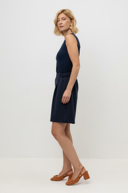 Шорты с защипами и широким трикотажным поясом— это идеальное сочетание элегантности и комфорта. Боковые карманы добавляют функциональности изделию. Изготовлены из премиального трикотажа DOUBLE FACE с добавлением спандекса.