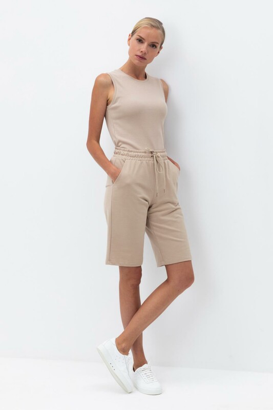 Удлиненные женские шорты из футера с удобными боковыми карманами и резинкой по поясу. Низ обработан плоскими швами.