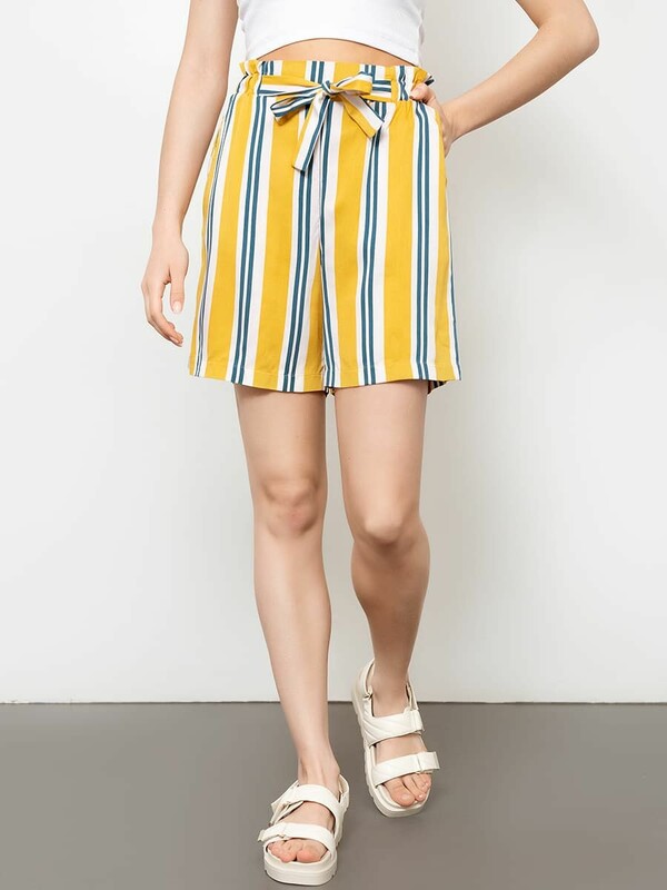 Шорты женские для дома и отдыха выполнены из тканого полотна, с высокой талией.