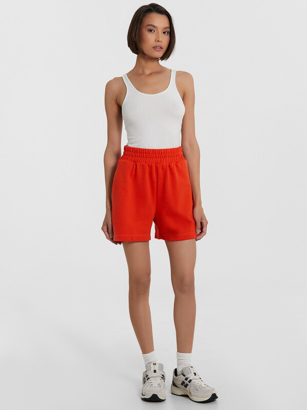 Шорты свободного силуэта из легкого трикотажного футера. Широкий эластичный пояс с тесьмой внутри и декоративными строчками. Есть удобные боковые карманы. Рекомендуем!