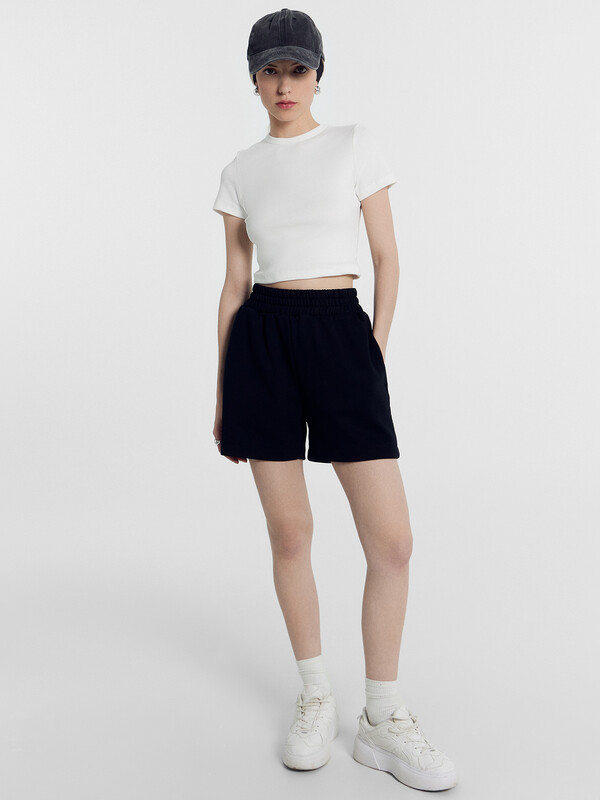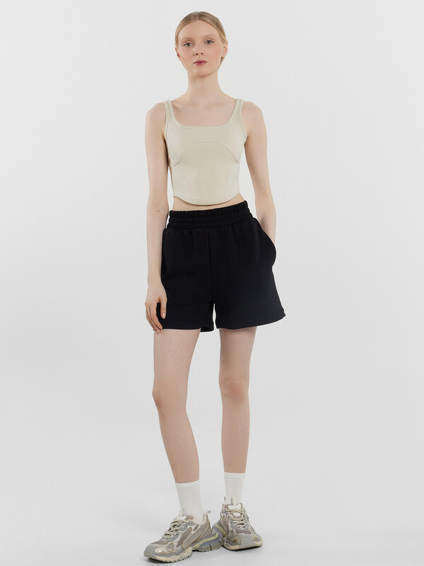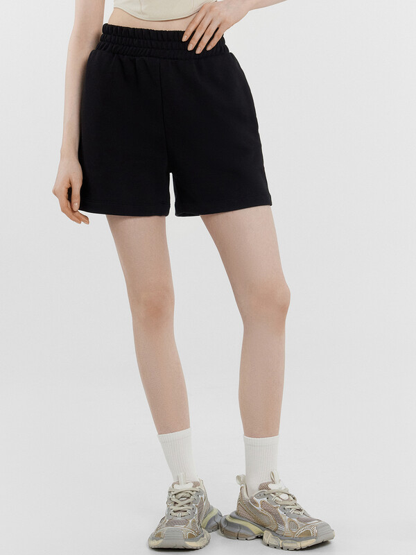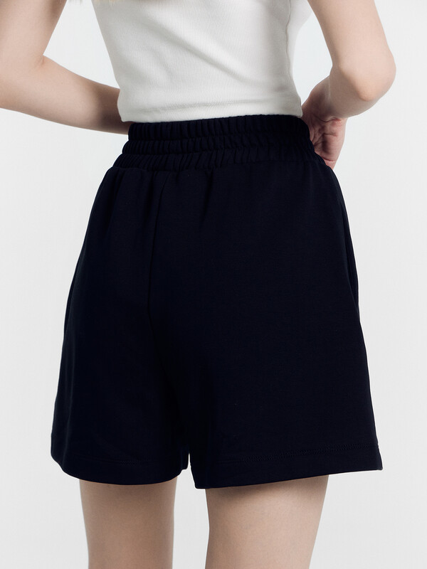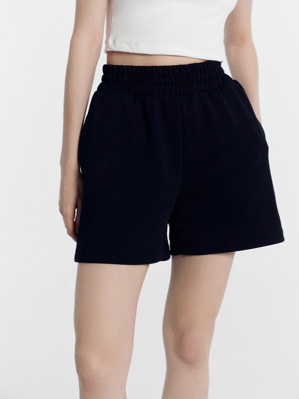 Шорты свободного силуэта из легкого трикотажного футера. Широкий эластичный пояс с тесьмой внутри и декоративными строчками. Есть удобные боковые карманы. Рекомендуем!