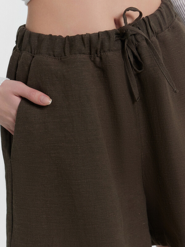 Женские шорты свободного силуэта с боковыми карманами и эластичным поясом на кулиске - это идеальное сочетание комфорта и стиля. Модель выполнена из смесового льна и вискозы, что придает изделию уникальные преимущества. Лён известен своей прочностью, долговечностью и прекрасной воздухопроницаемостью, что делает одежду из него идеальной для жаркой погоды. Он также обладает природными антибактериальными свойствами и гипоаллергенностью. В то время как вискоза добавляет мягкость и гладкость, улучшая тактильные ощущения и комфорт при носке.