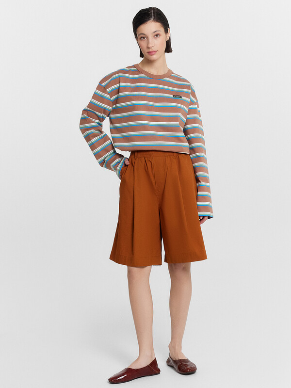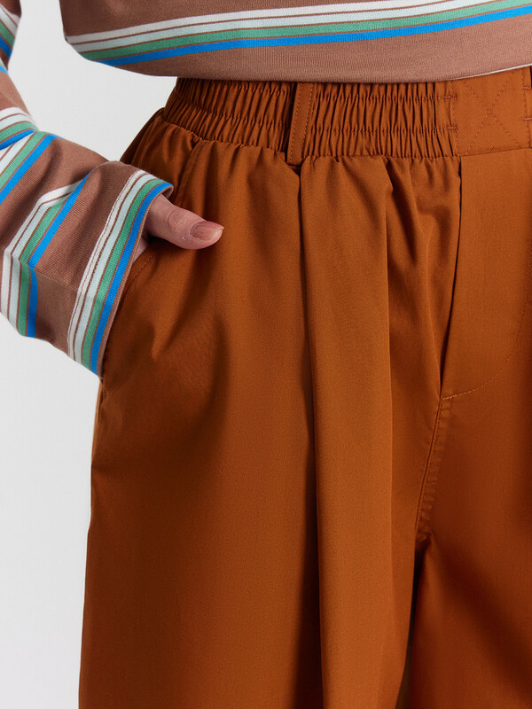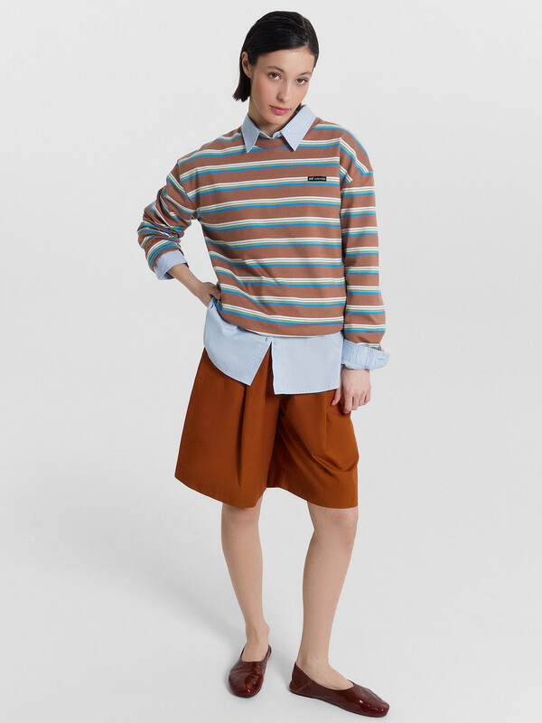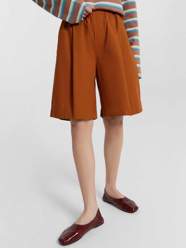 Женские шорты А-силуэта разнообразят ваши весенне-летние образы! Модель свободного кроя обеспечивает комфорт и стиль, становясь универсальным выбором для теплого сезона. Эластичный пояс с петлями для ремня позволяет регулировать посадку, обеспечивая удобство и функциональность. Боковые карманы добавляют практичности, позволяя разместить мелкие вещи, а имитация гульфика придает шортам изысканный вид. Длина чуть выше колена делает эту модель лёгкой и элегантной. Изделие выполнено из натурального хлопка, что гарантирует воздухопроницаемость, мягкость и долговечность. Эти шорты легко комбинируются с топами, рубашками или футболками, создавая стильные и непринужденные образы для прогулок, отдыха или повседневной носки.