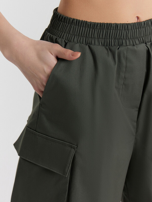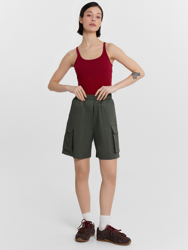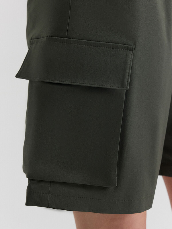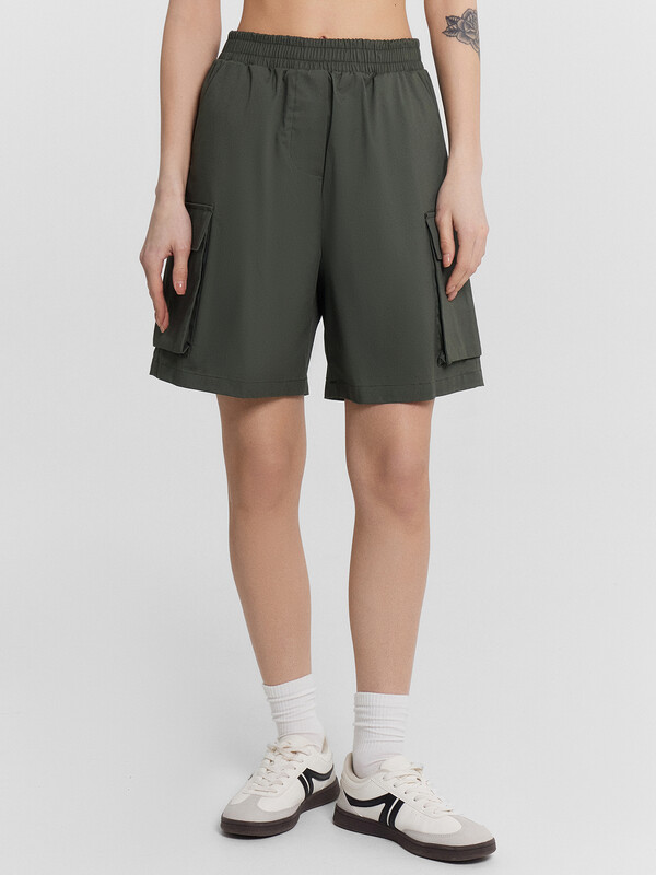 Женские шорты прямого силуэта — идеальный выбор для создания расслабленного и практичного образа, который подойдёт для тёплых дней и активного отдыха. Эластичная талия на кулиске обеспечивает идеальную посадку и комфорт в носке, легко адаптируясь к особенностям фигуры. Накладные карманы с клапанами спереди не только добавляют функциональности, но и подчеркивают стильный дизайн. Имитация гульфика придает изделию завершенный и аккуратный вид. Шорты длиной выше колена создают удобный и современный дизайн, который легко сочетается с различной одеждой. Материал из хлопка с добавлением искусственных волокон обеспечивает мягкость, прочность и воздухопроницаемость, делая эту вещь удобной для повседневного ношения. Сочетайте их с футболками, топами или легкими блузками, чтобы создать стильные образы для любых ситуаций! Эти шорты станут вашим надёжным выбором для летнего гардероба.