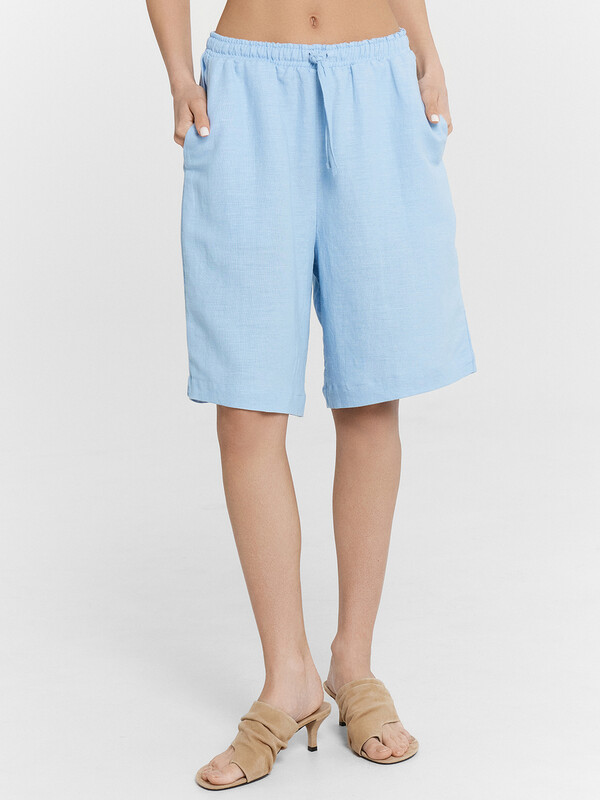 Шорты женские свободного силуэта, длиной до колен. Пояс отрезной с эластичной тесьмой внутри
