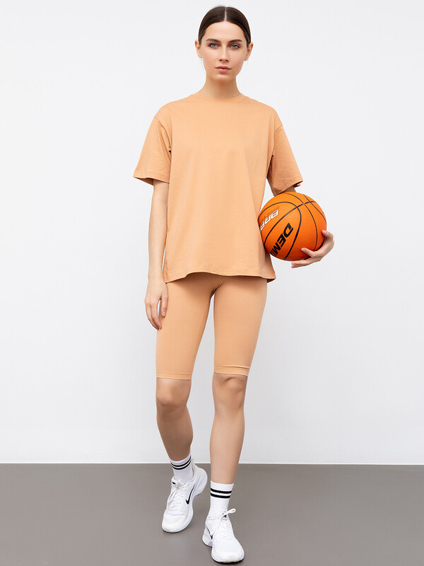 Отличные спортивные шорты. В составе полотна – натуральный хлопок и немного эластана. Длина до колена, силуэт прилегающий. Завышенная линия талии и широкий эластичный пояс дарят комфорт даже во время интенсивных занятий.