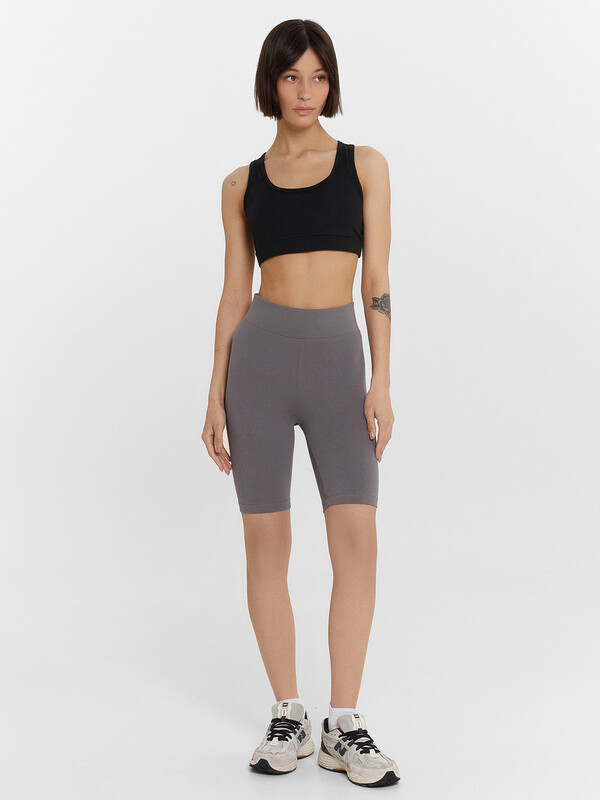 Шорты-велосипедки облегающего силуэта. Выполнены из нежной хлопковой кулирки. Длина модели выше колен. Линия талии завышенная. Широкий отрезной пояс и эластичная тесьма в талии дарят особый комфорт.