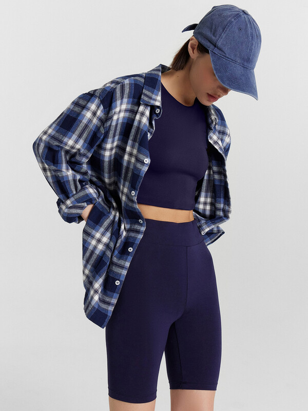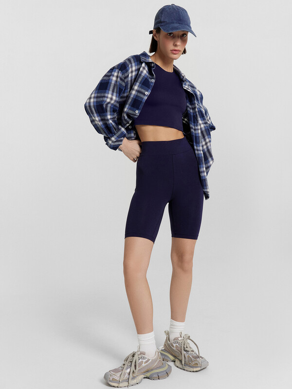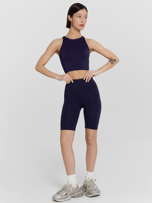 Шорты-велосипедки облегающего силуэта. Выполнены из нежной хлопковой кулирки. Длина модели выше колен. Линия талии завышенная. Широкий отрезной пояс и эластичная тесьма в талии дарят особый комфорт.