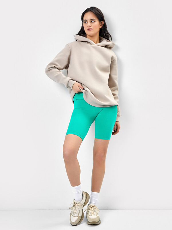 Шорты-велосипедки облегающего силуэта. Выполнены из нежной хлопковой кулирки. Длина модели выше колен. Линия талии завышенная. Широкий отрезной пояс и эластичная тесьма в талии дарят особый комфорт.