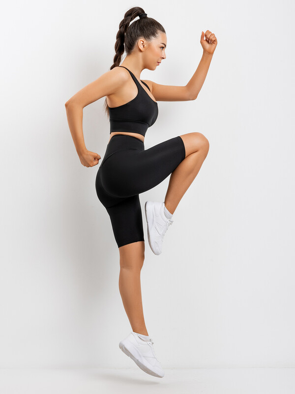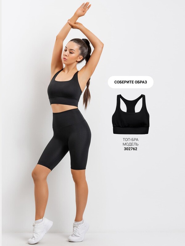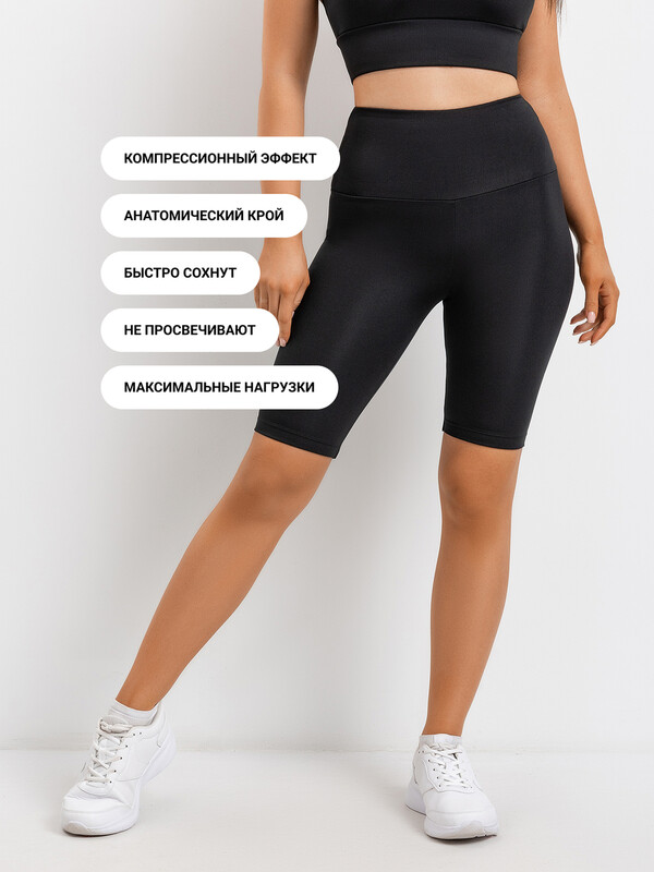 Шорты женские изготовлены из трикотажного полотна иентерлок. Шорты облегающего силуэта, с высокой линией талии. Пояс широкий отрезной с эластичной тесьмой внутри.