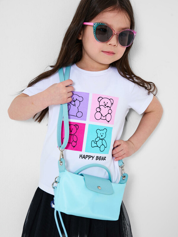 Солнцезащитные очки для девочки. Градиентная прозрачная оправа по верхнему краю декорирована стразами. Солнцезащитные очки с фильтром Cat3 и поляризацией. Тёмные линзы имеют защиту UV400, которая отражает 100% ультрафиолетовых лучей с длиной волны менее 400 нанометров, эффективно блокируя все ультрафиолетовые лучи при солнечном свете. Ширина оправы - 126 мм, длина дужек - 125 мм. Обхват головы 48-50 см. Небьющиеся линзы из триацетата целлюлозы устойчивы к царапинам. Поляризационные фильтры на очках поглощают блики, отражаемые от горизонтальных поверхностей, что помогает повысить четкость зрения и избежать напряжения глаз ребенка. Только при просмотре в линзах с поляризацией видны воздушные шарики в виде сердечек на тест-картинке, вложенной в чехол. Небьющиеся линзы из триацетата целлюлозы устойчивы к царапинам. Такие очки эффективны для защиты глаз в тропиках, у моря и в горах. В комплекте: текстильный чехол, тест-картинка со слониками. Текстильный чехол выполнен из микрофибры и им можно легко ухаживать за изделием. . Очки транспортируются в картонной коробке.