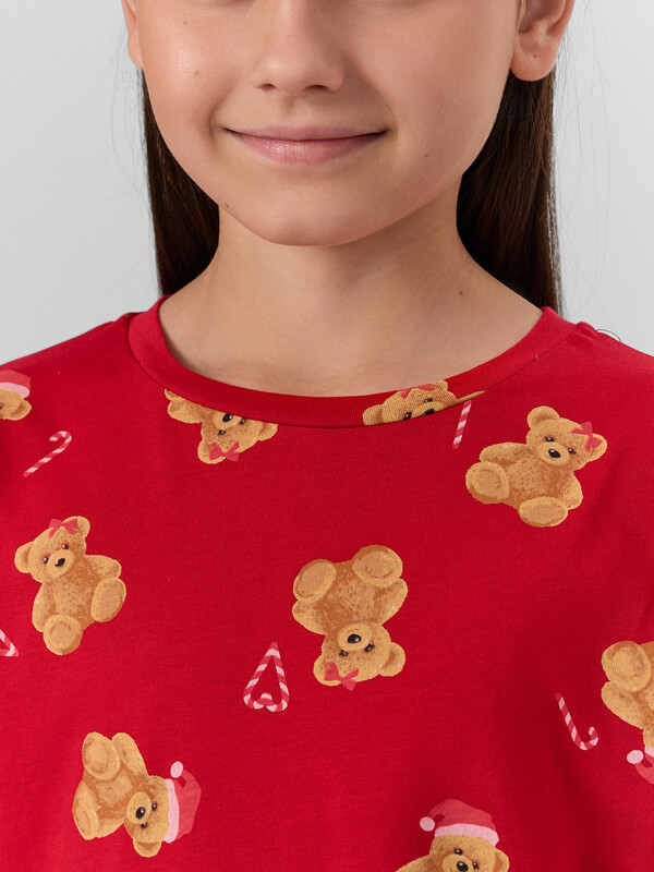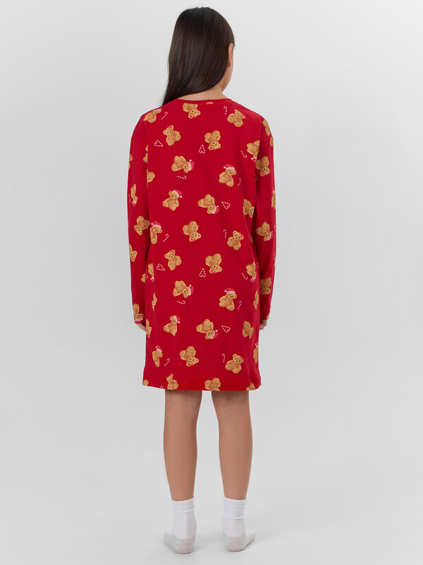 Ночная сорочка для девочек с новогодним принтом — прекрасный выбор для создания праздничного настроения! Модель прямого свободного кроя из мягкого хлопка обеспечивает комфорт на протяжении всей ночи.