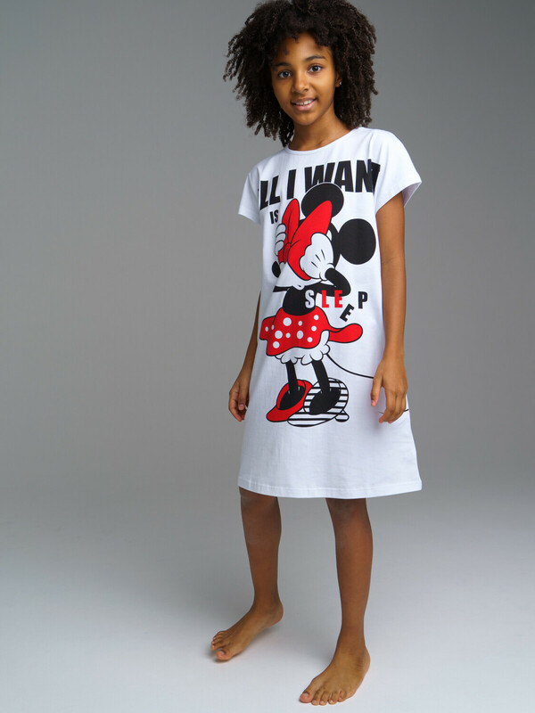 Сорочка ночная трикотажная для девочек (134, белый,Черный,красный)(PlayToday)