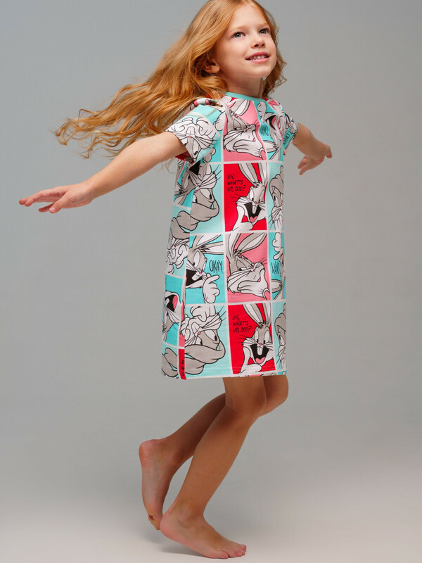 Ночная сорочка детская для девочки. Ночнушка из эластичного и приятного на ощупь трикотажа. Высокое содержание хлопка 95%. Благодаря наличию эластана в составе ткани изделие держит форму и меньше мнется.