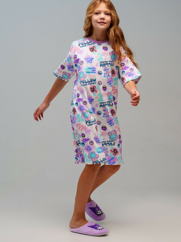 Ночная сорочка для девочки подростка. Ночнушка из эластичного и приятного на ощупь трикотажа. Высокое содержание хлопка 95%. Благодаря наличию эластана в составе ткани изделие держит форму и меньше мнется.