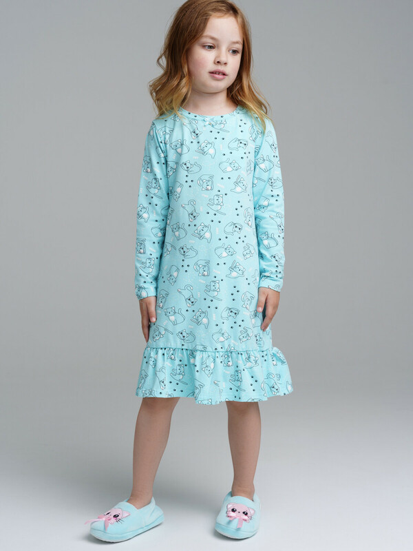 Ночная сорочка А-силуэта. Высокое содержание хлопка 93%. Благодаря наличию эластана в составе ткани изделие проще в уходе и держит форму.