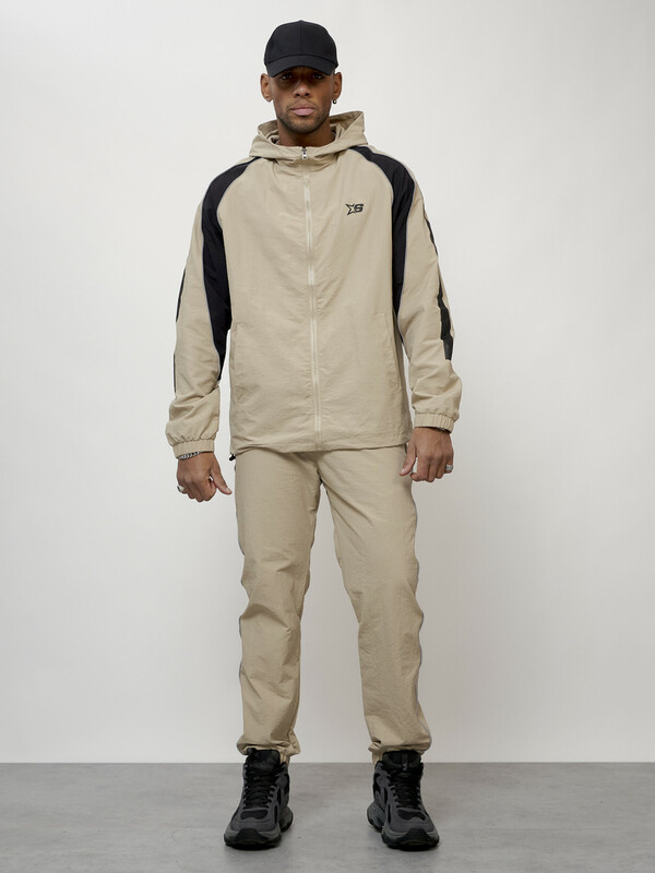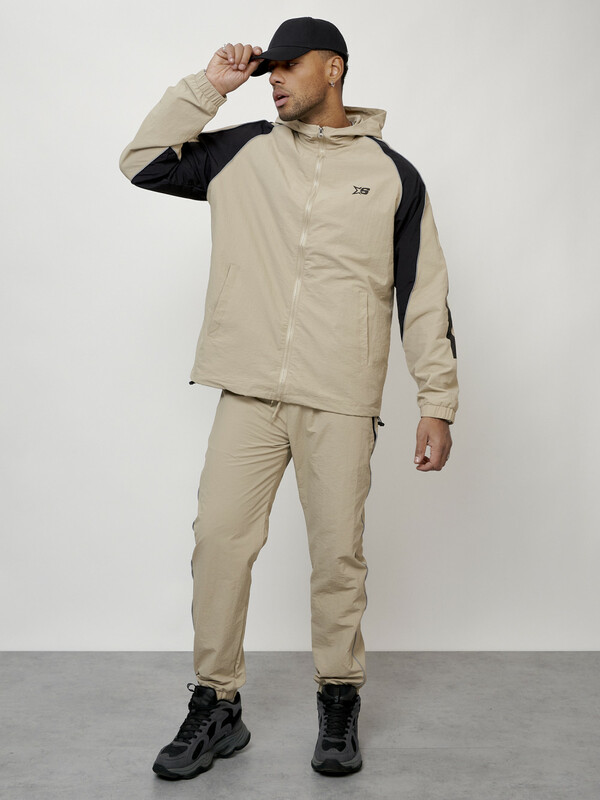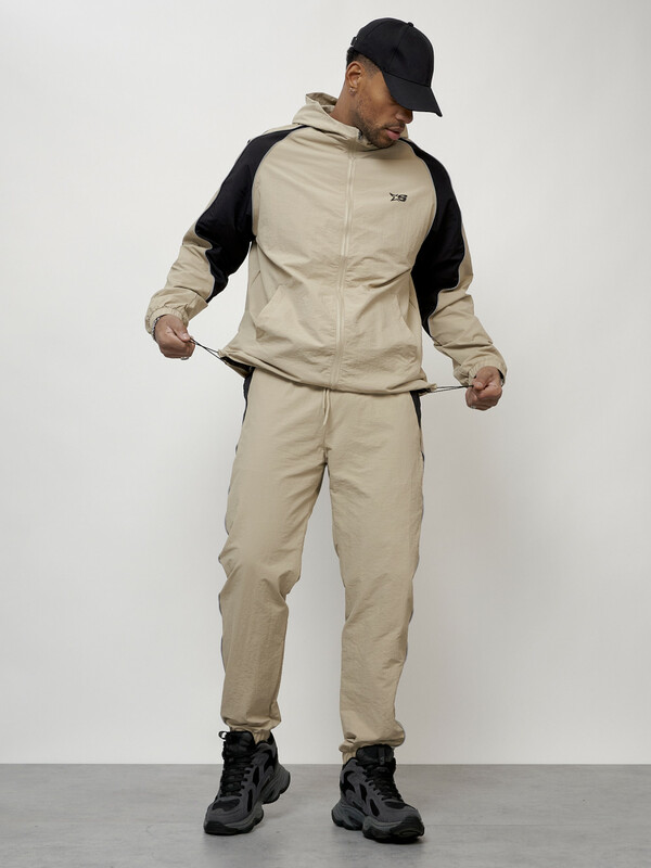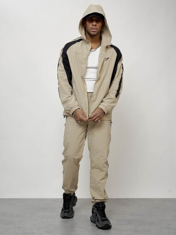 Мужской молодежный модный костюм спортивный для активного отдыха и повседневного использования. Этот стильный и удобный мужской костюм состоит из двух частей: олимпийки прямого кроя с капюшоном, а также брюк из прочного поликристаллического волокна. Этот материал обеспечивает комфорт при носке, а также долговечность использования костюма. Модель выполнена в стиле костюмов 90-х, но в соответствии с современными тенденциями. Кофта на молнии имеет прямой крой и длинные рукава с эластичными манжетами, капюшон, фиксатором на резинке по низу. Она оснащена прорезными боковыми карманами. Штаны свободного кроя имеют среднюю посадку, эластичную резинку в талии, шнурок и эластичные манжеты на лодыжках. Олимпийка в области туловища имеет сетчатую подкладку, в рукавах подкладка из полиэстера. Подкладка штанов - сетчатая. Ее длина до колена. Материал внешней стороны - плащевка. Костюм имеет комбинированный, сдержанный дизайн. Комплект подойдет для весенне-летнего периода.