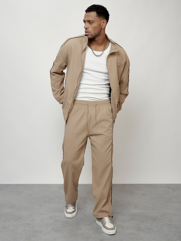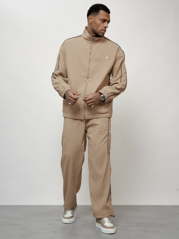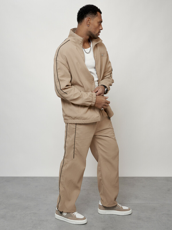 Главная страница - Каталог - Мужская одежда - Мужская повседневная одежда - Мужские комплекты, костюмы - Спортивный костюм мужской модный бежевого цвета 15020B
