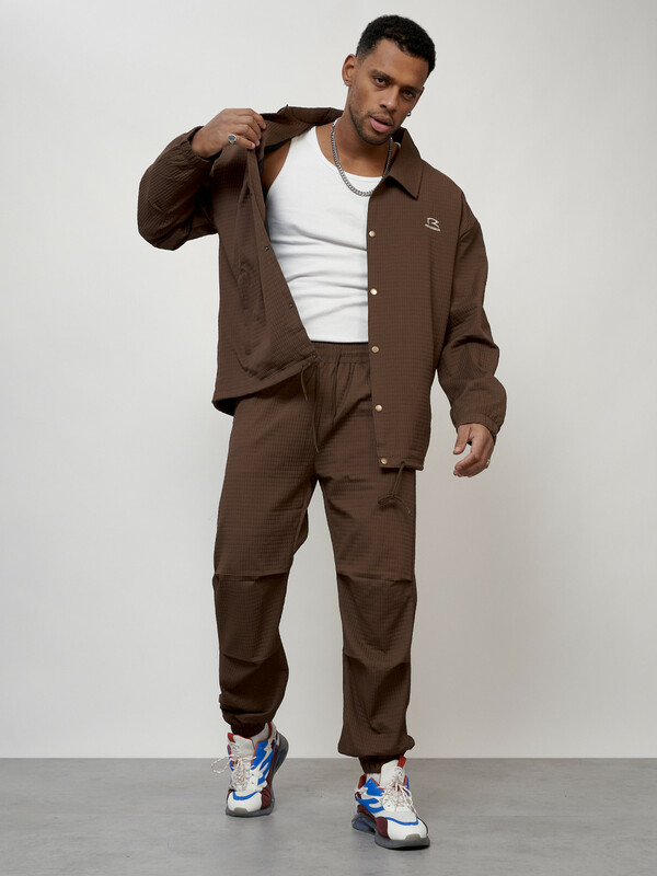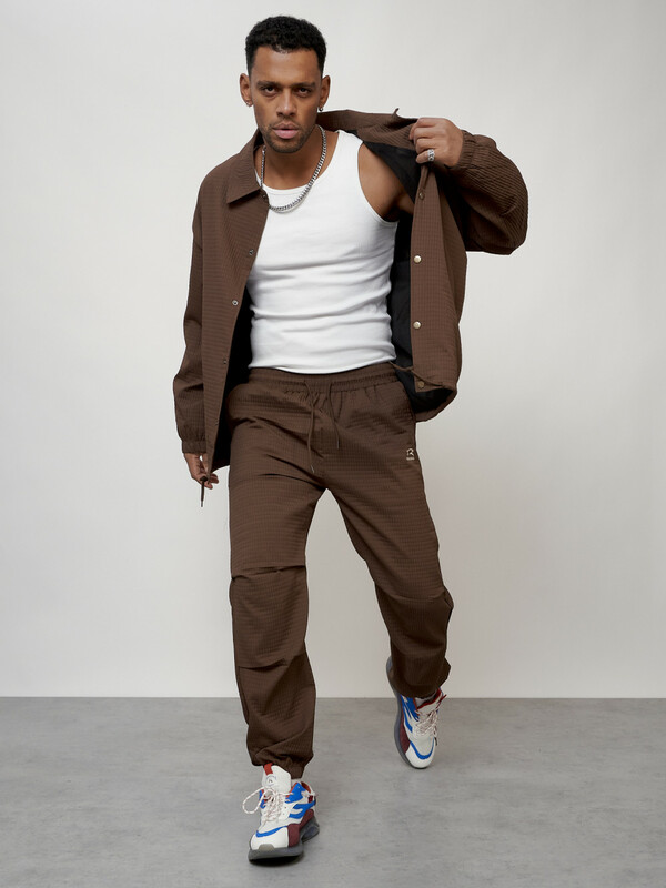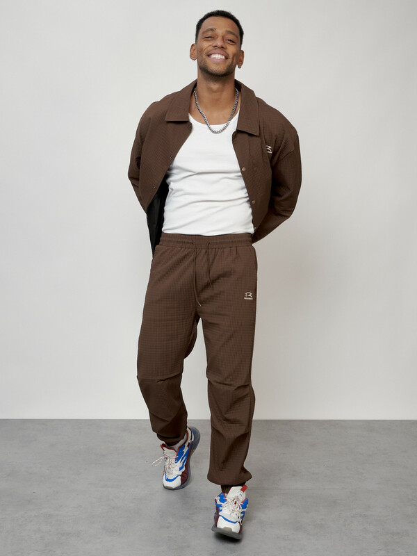 Главная страница - Каталог - Мужская одежда - Мужская повседневная одежда - Мужские комплекты, костюмы - Спортивный костюм мужской модный коричневого цвета 15010K
