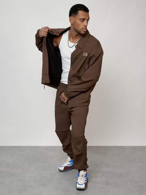 Спортивный костюм мужской модный коричневого цвета 15010K