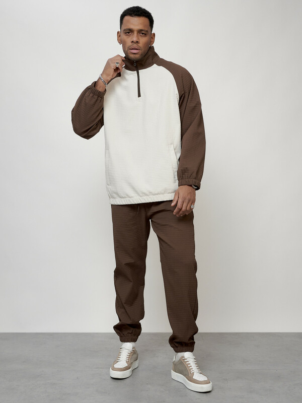Спортивный костюм мужской модный коричневого цвета 35021K