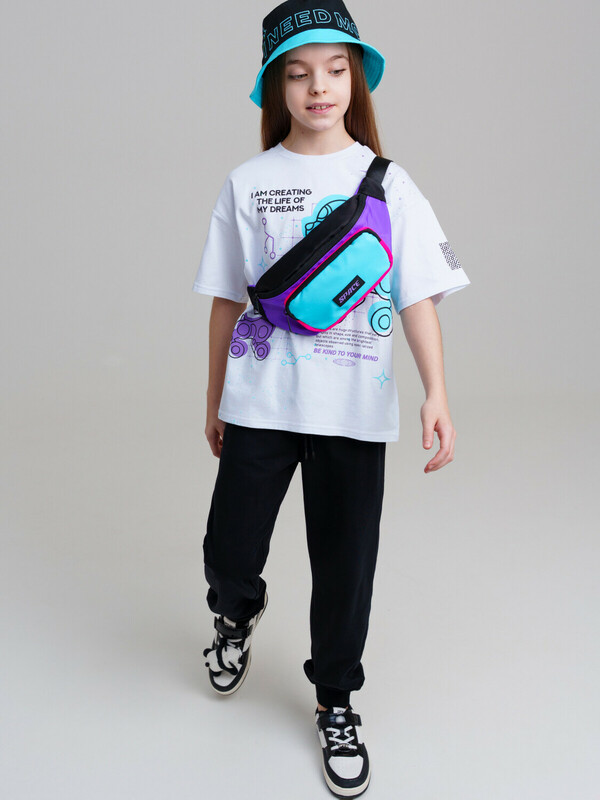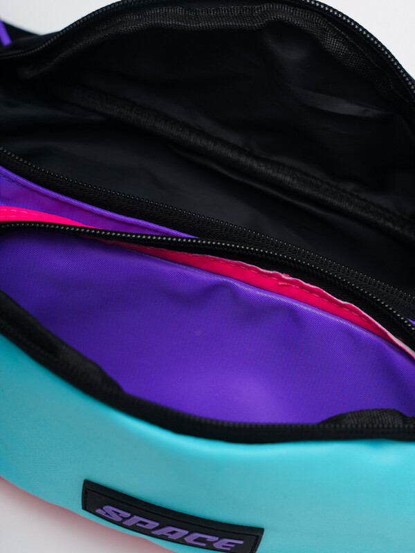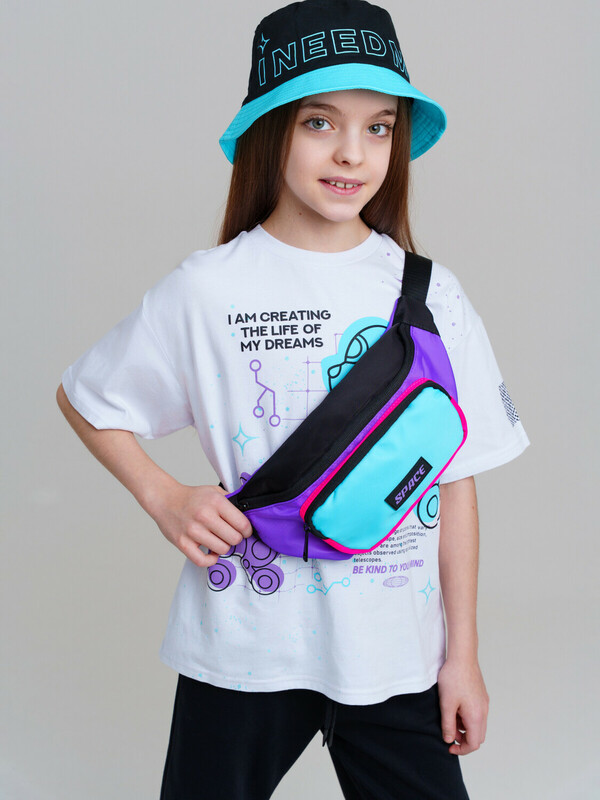 Текстильная поясная сумка для девочки подростка выполнена из ткани с покрытием, с которой легко удаляется грязь. Регулируемый ремень. Основной отсек на молнии, спереди дополнительный карман на молнии. Параметры: высота - 14 см, ширина - 33 см, глубина - 8 см.