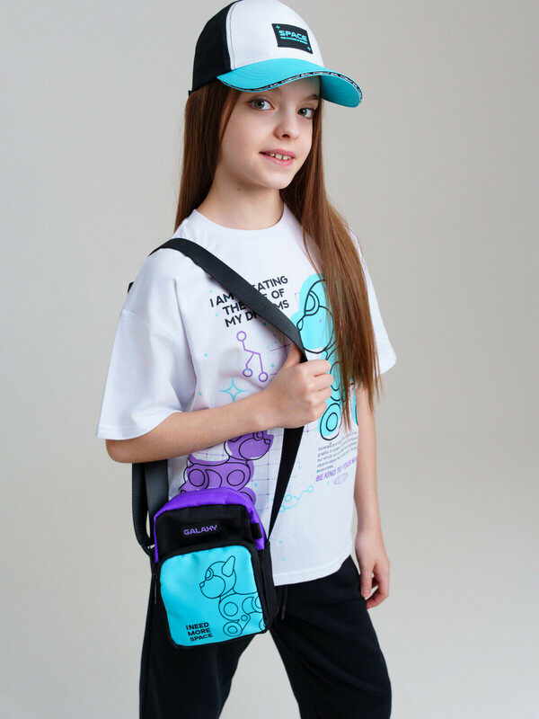 Сумка для девочки подростка. Яркая трендовая сумка кросс-боди для девочки-подростка. Ткань легко поддается уходу. Регулируемый ремень. Основной отсек на молнии, спереди дополнительный карман на молнии. Параметры: высота - 18 см, ширина -13 см, глубина - 6 см.