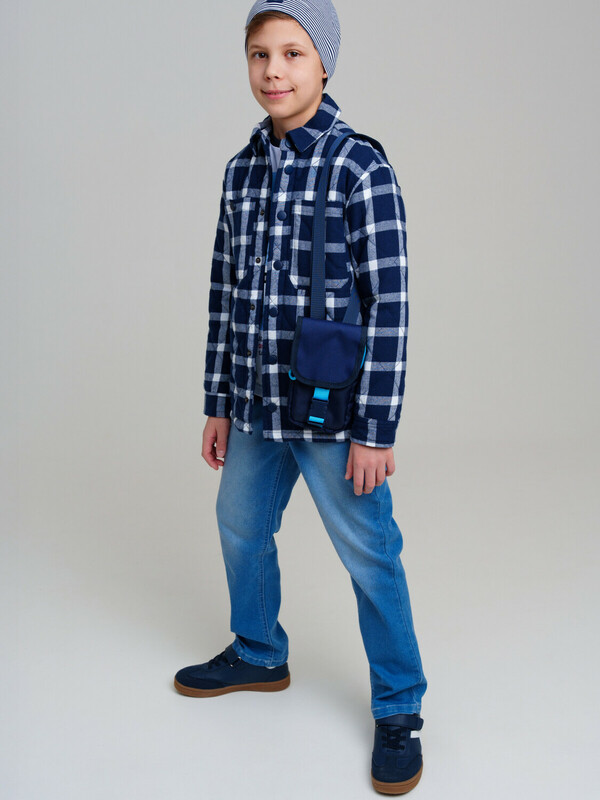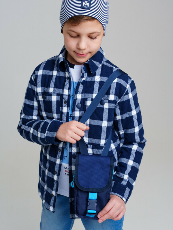 Текстильная сумка кросс-боди с клапаном для мальчика-подростка. Регулируемый ремень. Основной отсек на молнии, сверху клапан на липучке. Параметры: высота - 19 см, ширина -10 см, глубина - 2 см.