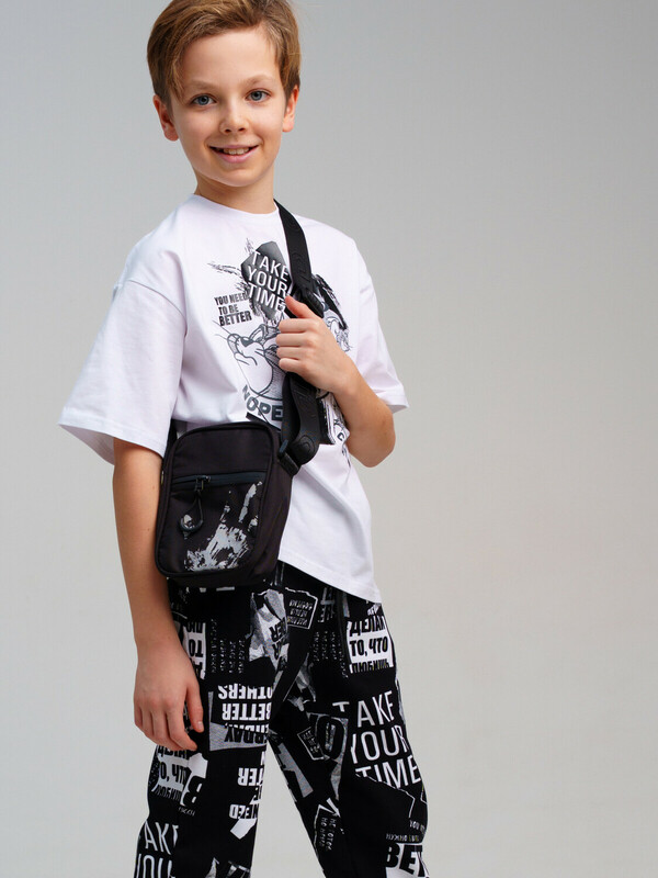 Стильная текстильная сумка кросс-боди для мальчика-подростка. Светоотражающий принт. Регулируемый брендированный ремень. Основной отсек на молнии, спереди дополнительный карман на молнии, сзади карман для транспортной карты. Параметры: высота - 18 см, ширина -13 см, глубина - 6 см.