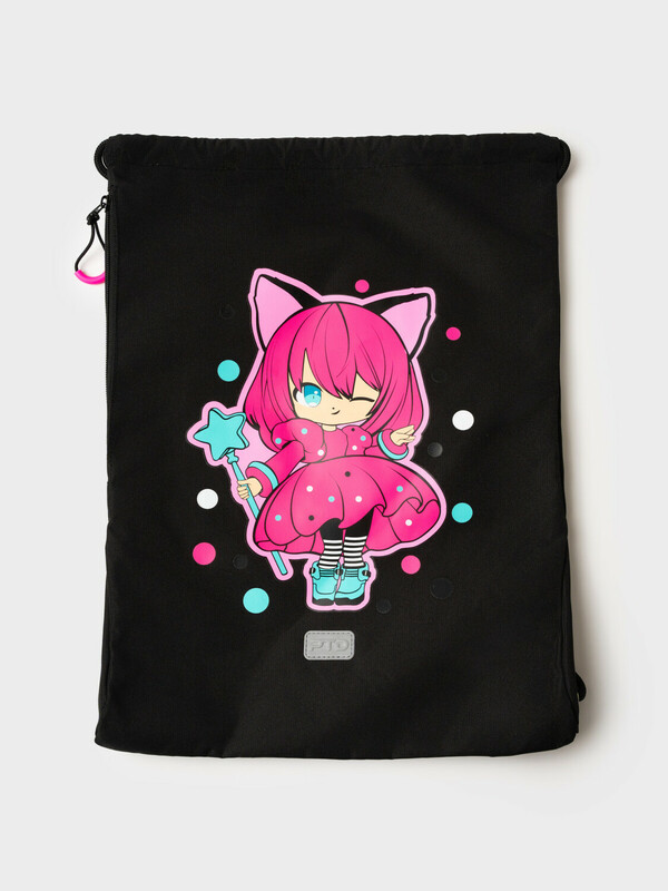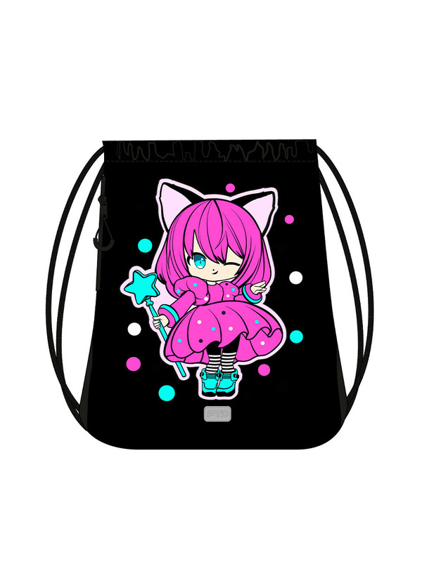 Сумка-мешок для сменной обуви из прочной водонепроницаемой ткани для девочки. Мешок для сменки для школьницы с вместительным отделением, затягивающимся двумя шнурками. Дополнительный боковой карман застегивается на молнию. Размер мешка 34*44*2 см. Это отличный вариант для школы и детского садика. В него можно складывать не только сменную обувь, но и спортивную одежду для физкультуры и секций, брать в путешествия. Он легкий и компактный. К мешку для сменки можно подобрать рюкзак и пенал в едином дизайне.