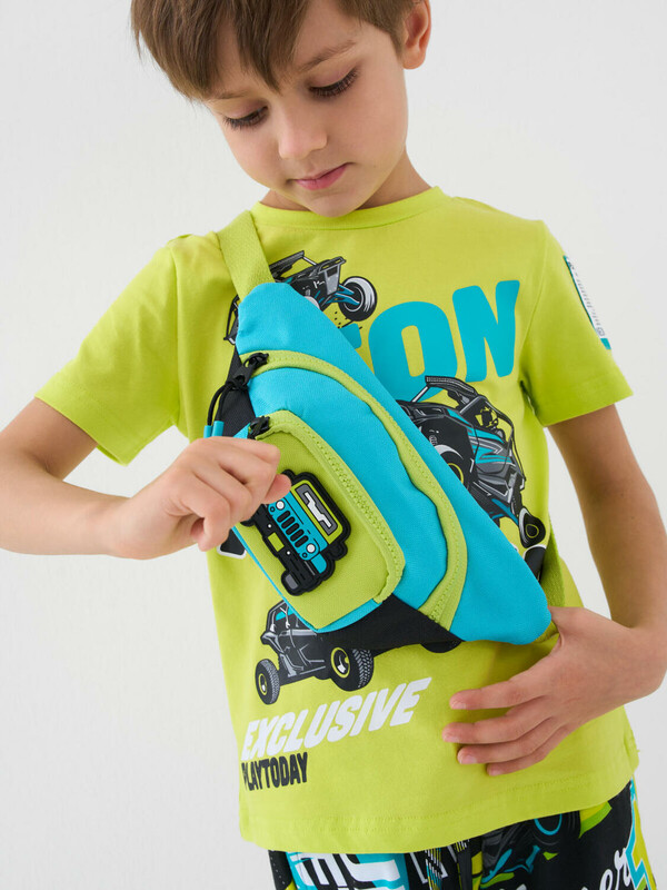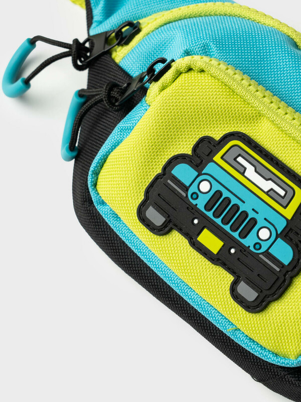 Яркая поясная сумка в стиле колор-блок для мальчика. Регулируемый ремень. Основной отсек на молнии, спереди дополнительный карман на молнии с крупным патчем машинкой. Параметры сумки: высота - 11,5 см, ширина - 26 см, глубина - 3 см