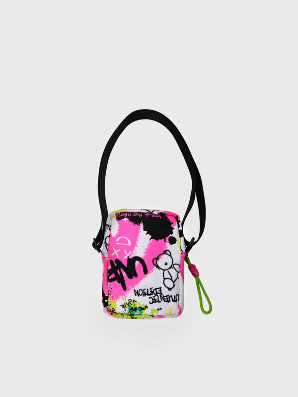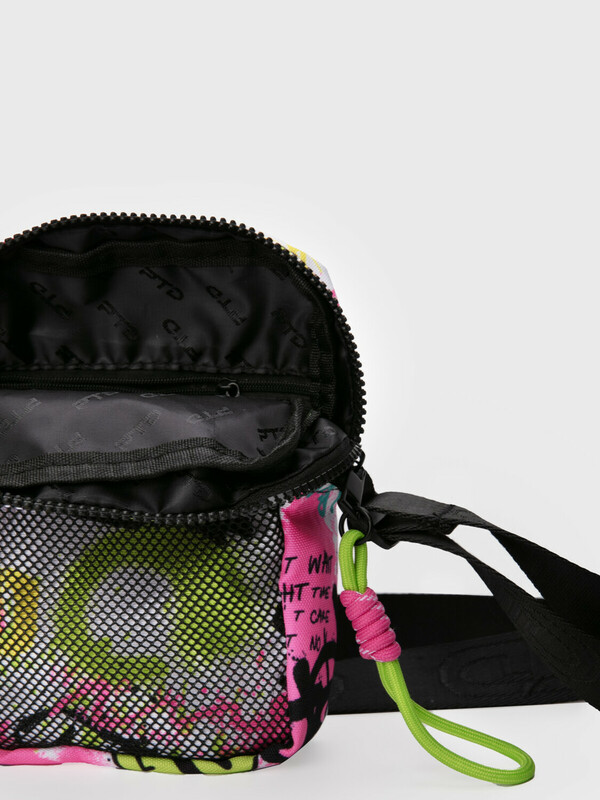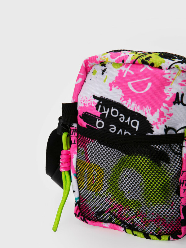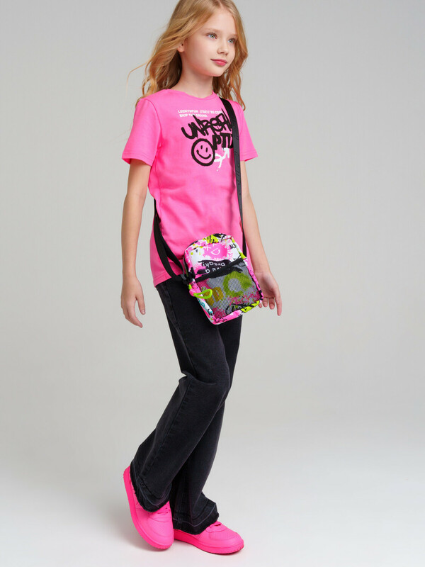Стильная яркая текстильная сумка кросс-боди для девочки подростка. Принт под коллекцию одежды. Регулируемый брендированный ремень. Основной отсек на молнии, спереди дополнительный карман-сетка, сзади карман для транспортной карты. Параметры: высота - 18 см, ширина -13 см, глубина - 6 см.