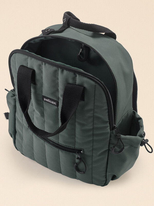 Детский рюкзак из стильного матового стеганого материала. В составе ткани 100% полиэстер — детская сумка прочная, лёгкая и не теряет цвет в течение долгого времени. Внутри рюкзака скрывается одно большое отделение, дополнительный карман и несколько маленьких кармашков, в которые легко поместятся все необходимые ребёнку вещи. Плюс пластиковый карабин, на который можно повесить ключи. Снаружи центральный карман на молнии, а также два объёмных боковых кармана, закрываются на шнурки-фиксаторы. Рюкзак модный станет незаменимым компаньоном во время прогулок, путешествий, занятий в детском саду или внеклассных занятий. Крупные пуллеры на молниях позволят вашему малышу без проблем застёгивать и расстёгивать замки, даже когда на руках варежки или перчатки. Рюкзак для детей дополнен регулируемыми по длине плечевыми лямками, которые гарантируют, что рюкзак будет идеально сидеть, независимо от роста ребенка. Ручки сумки можно легко зафиксировать друг с другом с помощью кнопки, обеспечивая комфорт во время движения. Рюкзак зеленый универсален и подойдет как мальчику, так и девочке. Помните о правильном уходе за изделием: рекомендуется стирать при температуре не выше 30 °C, без предварительного замачивания, с изнанки. Это поможет сохранить качество и цвет сумки на длительное время.