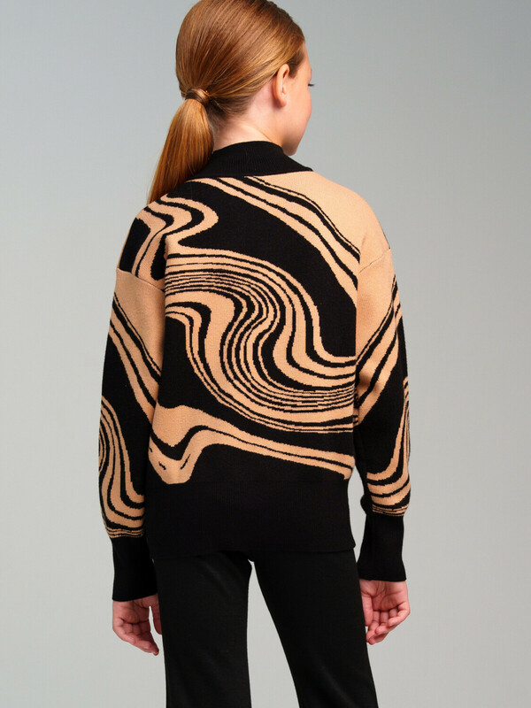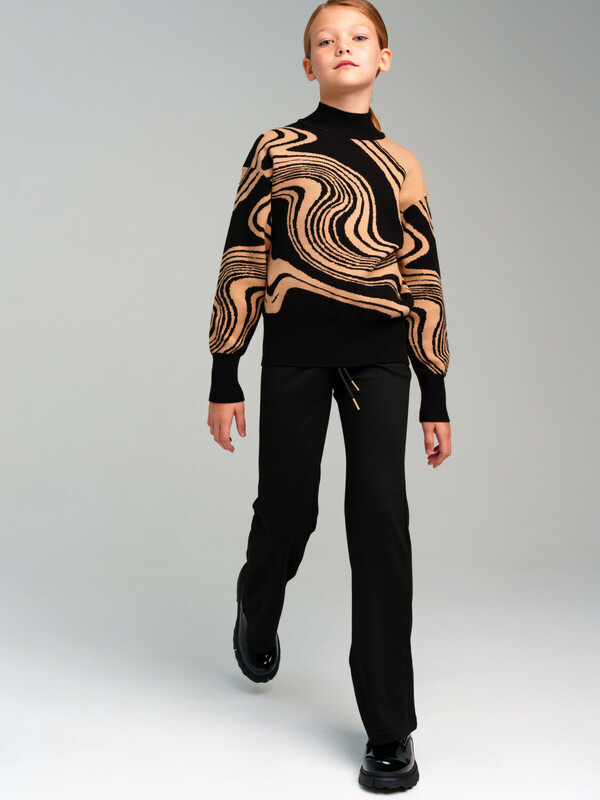 Свитер трикотажный для девочек (128, бежевый,черный)(PlayToday)