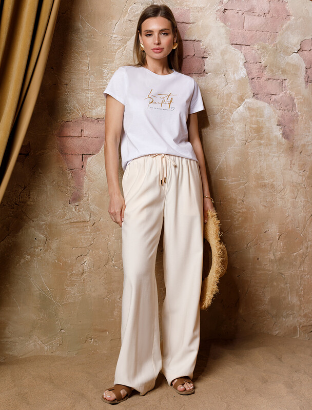 Свободные брюки из плотного лиоцелла на резинке (44 (170), кокосово-молочный)(Vilatte)